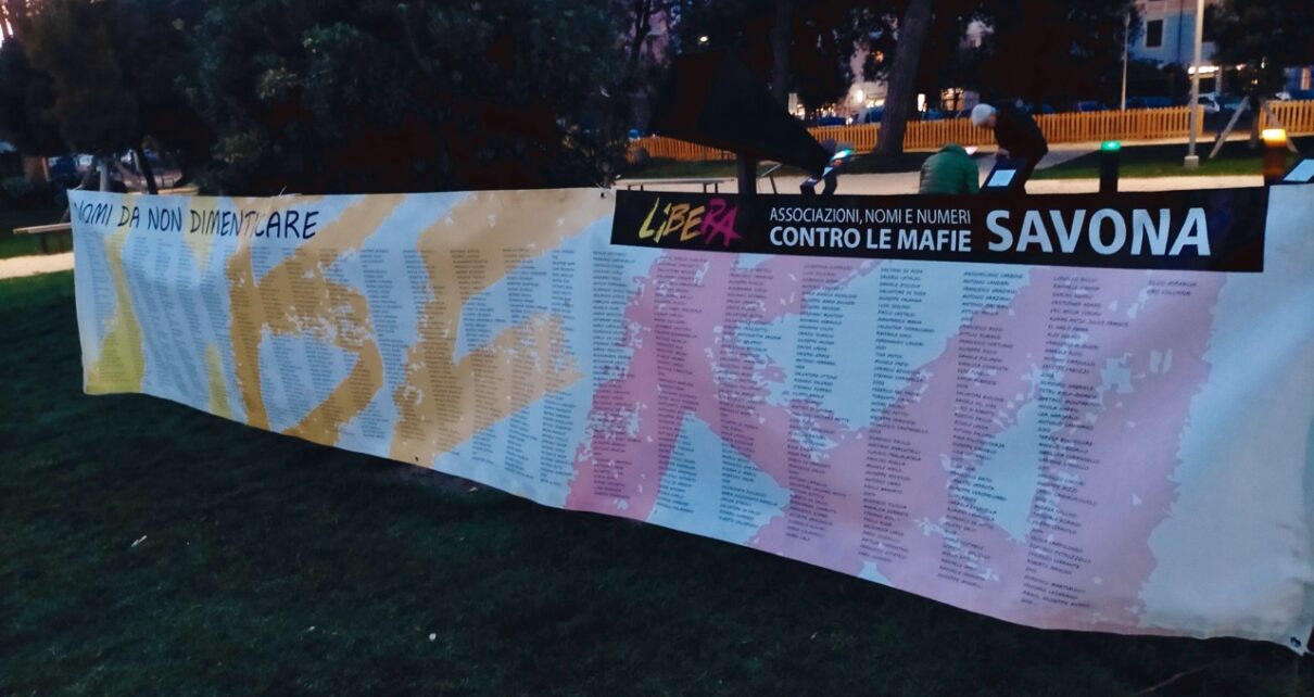Per l’occasione, Libera Savona ha installato un pannello con i nomi delle vittime innocenti delle mafie nel “Giardino dei Giusti” inaugurato lo scorso 6 marzo nei Giardini Principessa Mafalda di Savoia del Prolungamento a Mare di Savona, Passeggiata Walter Tobagi.