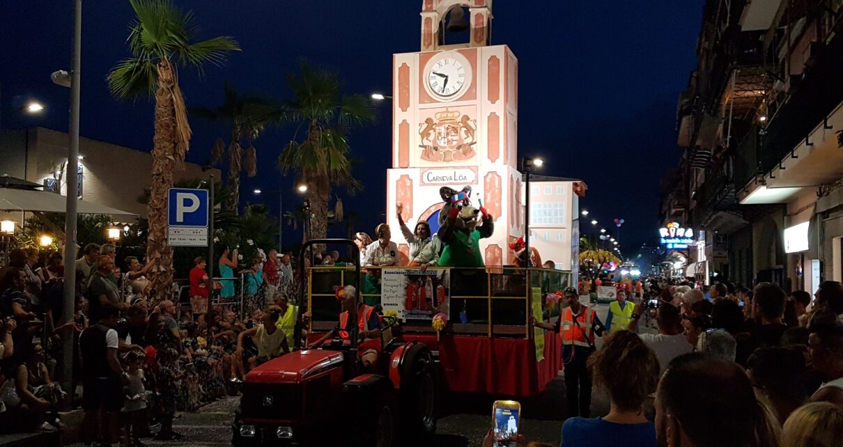 Ad aprire la sfilata sarà il tradizionale carro della Torre dell’Orologio e di Palazzo Doria con a bordo la maschera ligure Capitan Fracassa e le maschere loanesi “U Beciancìn”, Re del Carnevale e maschera ufficiale del Carnevalöa, “U Puè Peppin”, maschera tradizionale del carnevale di Loano, e la Principessa Doria del Castello. Di seguito sfilerà la “Beccian Car”, la macchina a “rigadera” ossia a forma di annaffiatoio, cioè il simbolo di Beciancin.