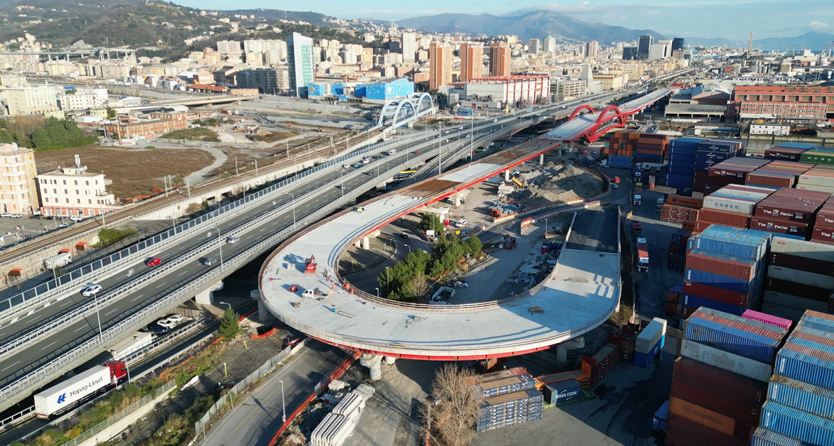 Procedono con ritmo i lavori per realizzare il nuovo sistema viario di accesso e transito nel porto di Genova Sampierdarena. Partendo da ponente, è stata completata la strada Superba in quota, di prossima apertura al traffico, che consentirà di intercettare i mezzi pesanti in uscita dal casello autostradale di Genova Aeroporto indirizzandoli direttamente ai varchi portuali attraverso una corsia dedicata.