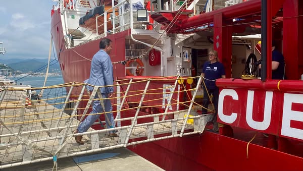 Il sindaco di Savona, Marco Russo, ha fatto visita alla Ocean Viking ancorata in porto a Savona che, nella serata di domenica, ha sbarcato 73 profughi salvati nel Medierraneo: