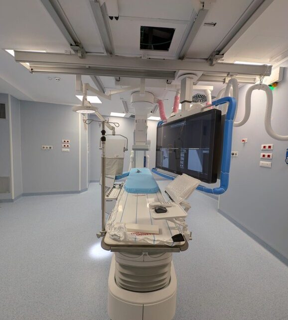 L’installazione del nuovo angiografo ha richiesto un’ampia opera di adeguamento architettonico e impiantistico degli ambienti situati al piano -1S del monoblocco, nei locali dell’Emodinamica/Elettrofisiologia – UTIC, in un’area logisticamente complessa per la vicinanza con l’accesso al pronto soccorso e agli ambulatori. L’intervento è stato gestito dalla Direzione Medica, dalla struttura Patrimonio e Gestione Tecnica, dai Sistemi Informativi Aziendali – Ingegneria Clinica e dalla Fisica Sanitaria di Asl 2.