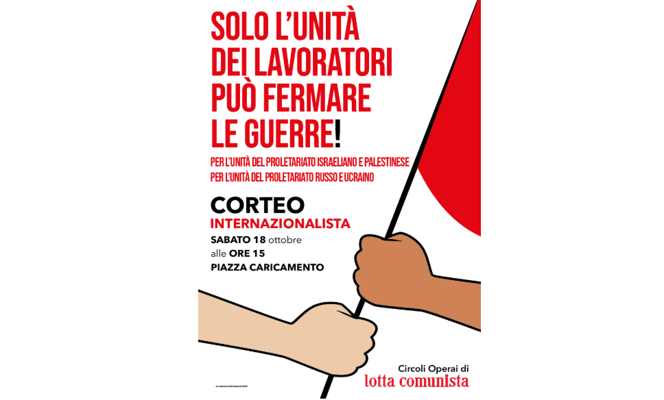 Nuovo corteo contro le guerre oggi a Genova. “Solo l’unità dei lavoratori può fermare le guerre”, è questo il motto della manifestazione in programma a Genova per sabato 18 ottobre. L’appuntamento è alle ore 15 in piazza Caricamento, da lì i manifestanti saliranno da via San Lorenzo fino a raggiungere piazza De Ferrari. Una manifestazione che trova la sua origine dalla contrarietà a qualsiasi forma “di guerra imperialista, contro il riarmo e tutta la sua propaganda”.