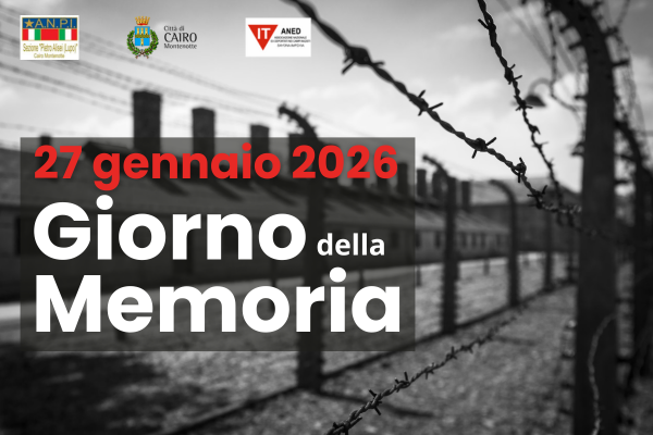 Il 27 gennaio l’Amministrazione comunale insieme all’ANPI Sezione “Pietro Alisei (Lupo)” di Cairo Montenotte e l’ANED Associazione nazionale ex deportati nei campi nazisti Savona-Imperia celebra il Giorno della Memoria.